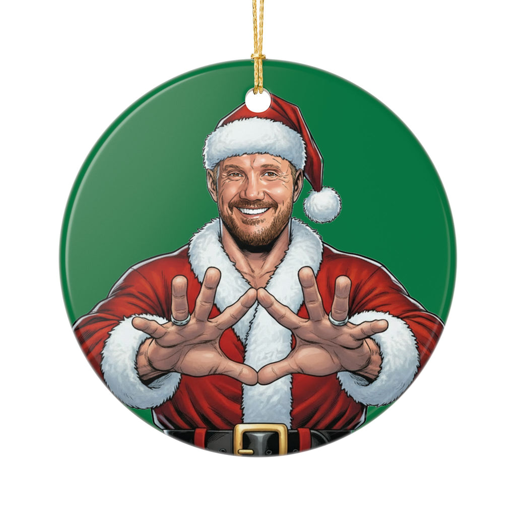 Hand-painted warmth for your tree — this round ceramic ornament brings lively holiday cheer with DDP Santa. The two-sided print keeps the same joyful image on both faces, so it reads beautifully from every angle. Hung by the included gold string, it adds a playful, welcoming note to mantels, wreaths, or gift tags. It’s the kind of small detail that turns a quiet evening into something cozy and memorable.