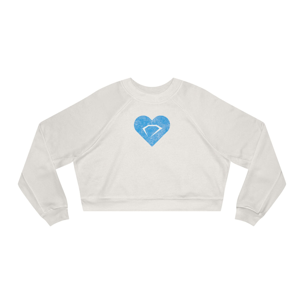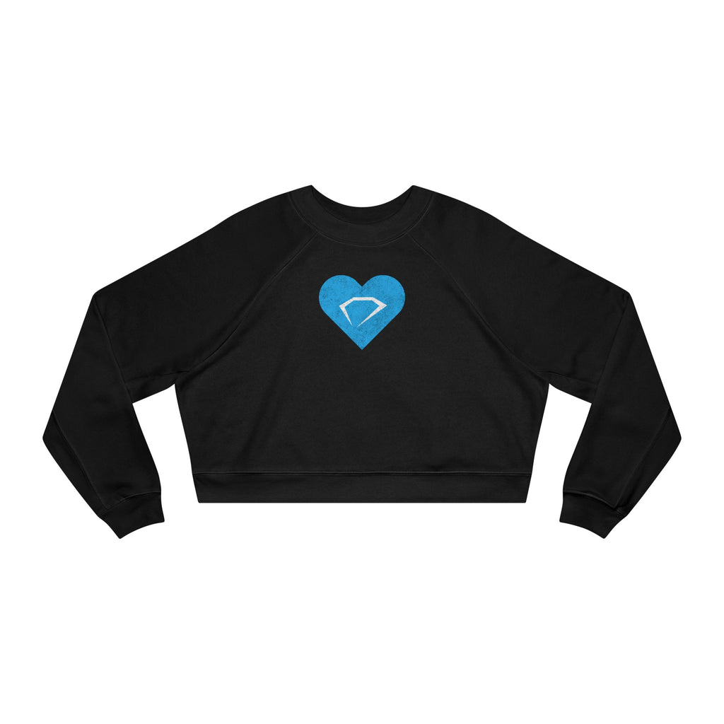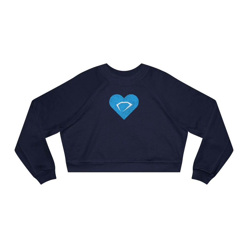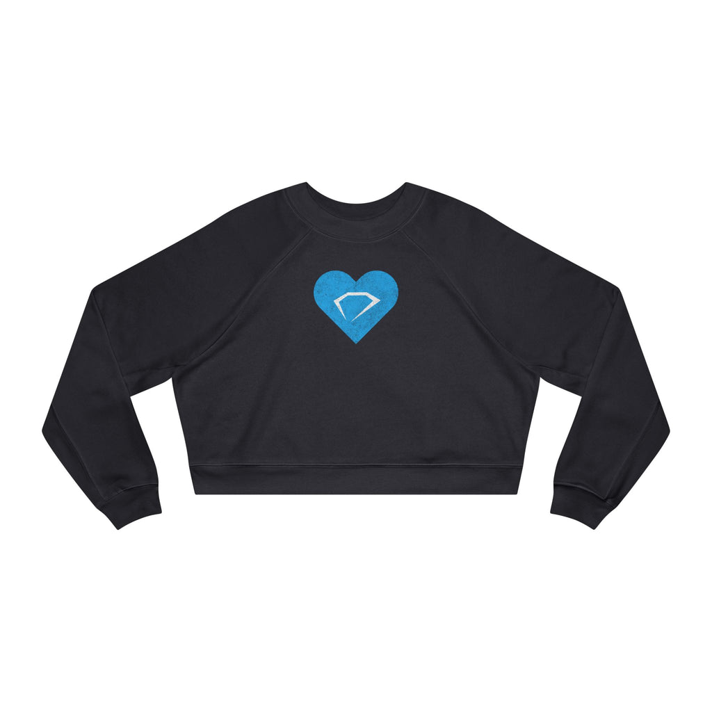 This cropped fleece pullover brings casual confidence to everyday wear. The mid-length silhouette and relaxed raglan sleeves create a laid-back, easy-moving feel — like a cozy exhale after a long day. A subtle blue heart Diamond rests at the chest, adding a quiet, personal touch that reads as thoughtful and modern. Soft, combed-ring spun cotton with a polyester fleece interior gives the fabric a smooth, lightly plush hand that layers well over tees or under jackets. It’s cut to let you move freely, with structured side seams and a mid-weight body that keeps shape without feeling heavy. Tear-away label and careful construction make it comfortable from the first wear.